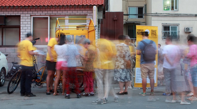 他们在小区里找到一辆废弃的垃圾车,把它改造成一辆明黄色的“调研车”,推着这辆车,用4天时间,在小区的不同地方采集到了187个人的想法。他们把大家的反馈也放了进去,不仅让每个人的声音都被听到,也让人们听到彼此的声音。
