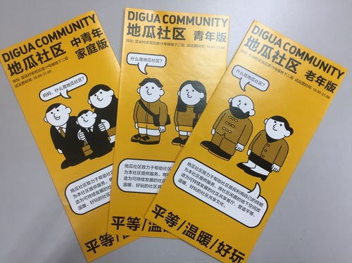 在地瓜社区的宣传手册上,写明了地瓜社区的营造理念:帮助社区居民利用自己的技能为本社区提供服务,营造平等、温暖、好玩的社区共享文化。“共享”成了地瓜社区的关键词,这也正是LOGO上那个掰成两半的地瓜的寓意。