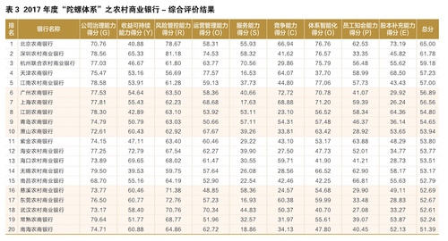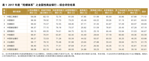 根据中国银行业协会18日下午发布的2017年“陀螺”(GYROSCOPE)评价体系综合评价结果,中国工商银行、北京银行和北京农商银行分别在各自全国性商业银行、城市商业银行和农村商业银行类别中占据综合评价榜首。