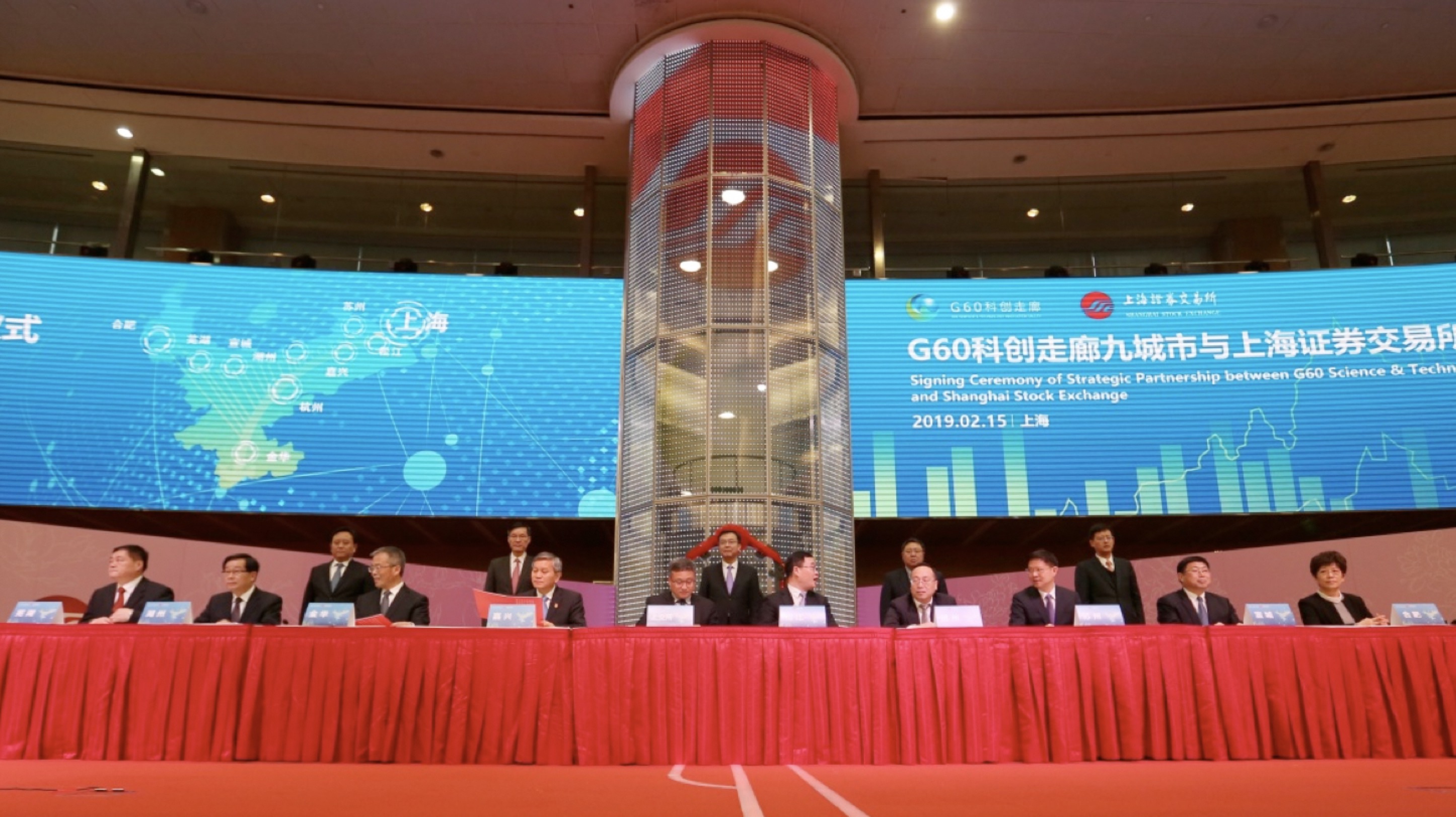 G60科创走廊九城市与上交所签约现场。秦天摄