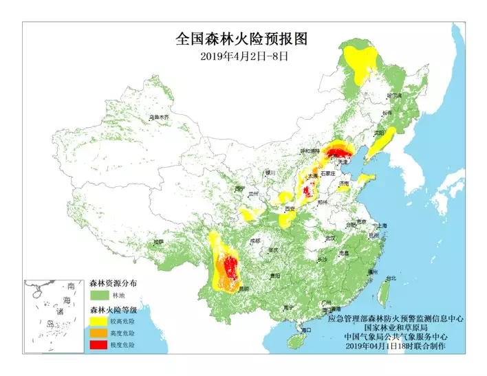 当前,全国森林草原防火进入关键期。蓝蓝天工作室从有关部门获悉,4月1日18时,应急管理部、国家林业和草原局、中国气象局联合发布3年来首个高森林火险红色预警:预计4月2日至8日,北京北部、天津北部、河北北部、山西、四川南部等地,森林火险等级将维持在极度危险级别,要切实加强防范森林火灾的发生。