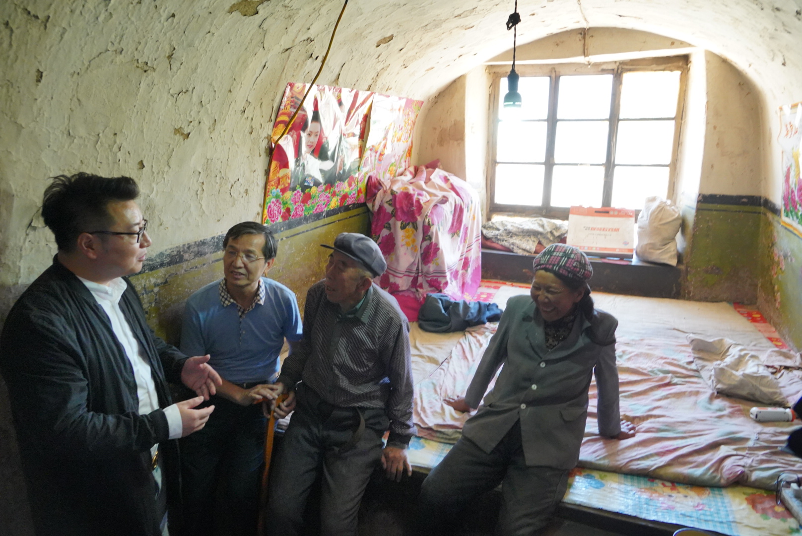 小分队走访慰问了当地唯一一户留守老人,在窑洞的炕头上,中国音协副秘书长熊纬现场深情地演唱了歌曲《父亲》,周澎演唱了歌曲《美丽中国走起来》,为老人带来了欢笑,感动了在场的所有人。