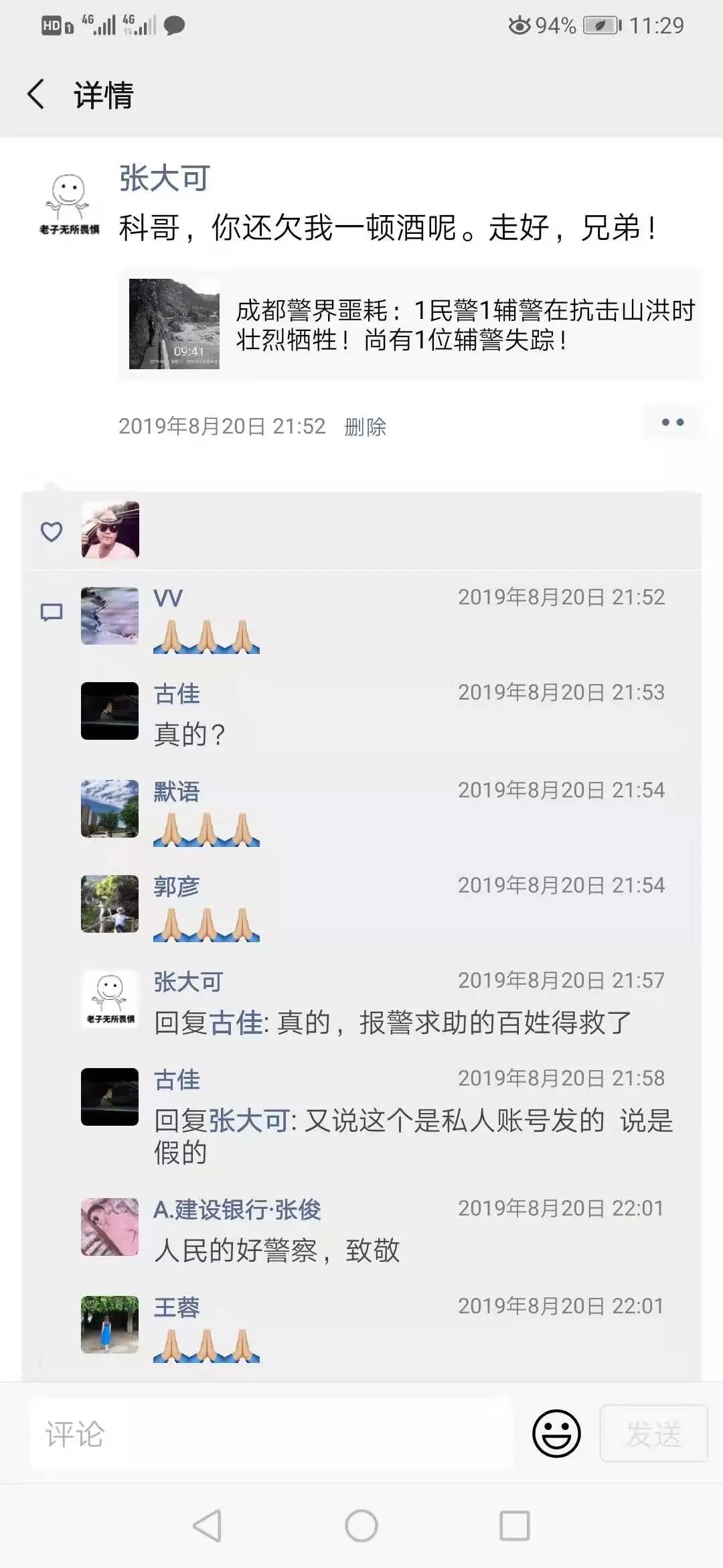 8月19日,大邑县遭受特大暴雨,暴雨引发山洪,西岭派出所的3位警员在20日凌晨两点驰援滞留游客。截至记者发稿前,两名警员牺牲,另一名失联。