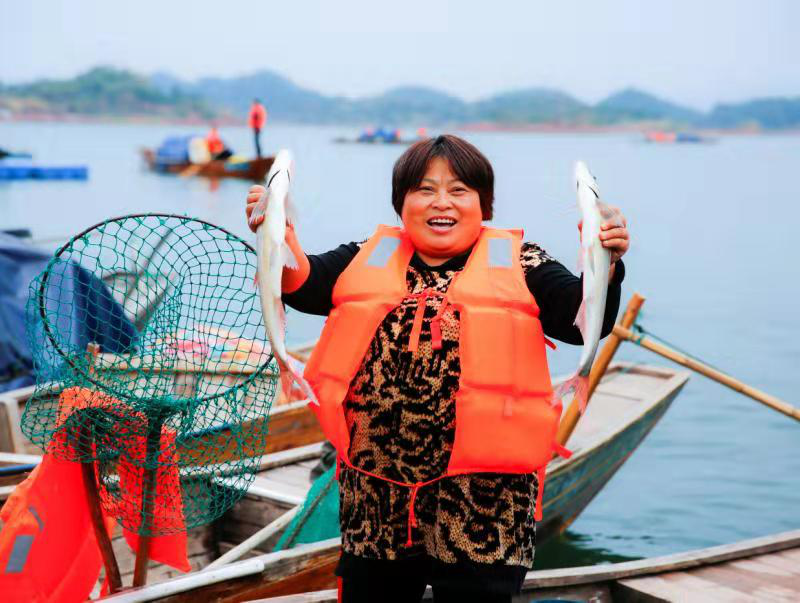 乡村先进文化先进,不光文化要先进,产业也要先进。文化建设不仅仅是让乡村本地人找到“根”的归属感,留住乡愁。习近平总书记强调,做好乡村振兴大文章,既要“脑袋富”,也要“口袋富”。既要“厚植”文化力量,避免千篇一律的形象工程,注重地域特色,展现乡土风情。也要结合自身的生态优势和文化优势建设乡村的多元化产业。得益于严家村“渔”文化的发展,严家人一改以往单一封闭的捕鱼劳作模式。开始探索“文化+旅游”的全新发展方向。凭借好水和好鱼,严家村人向前迈出了新步子,开始广泛热情地接纳外来游客。越来越多的农家乐、民宿出现在这个村庄,“捕鱼是旅游的卖点,从捕鱼的行为到渔文化的传播是关键。我们将结合渔村传统,向游客开辟垂钓区、采摘区、参观区,加深游客对本地文化和亚运文化结合的体验感,用文化推动乡村振兴。”界首乡党委书记张日军说。游客在感受严家村的传统渔文化的同时,还能亲自尝试捕鱼,品味严家村的特色鱼干。通过“看、学、捕、做、尝”五个环节的设置,让游客充分接触并感受严家的“渔耕文化”。一个传统渔村,正在乡村党组织和全体党员的带领下,顺势而为,结合自身文化和产业优势建设文化旅游的新道路,成为结合吃、住、游乐于一体的综合性渔文化主题村落。