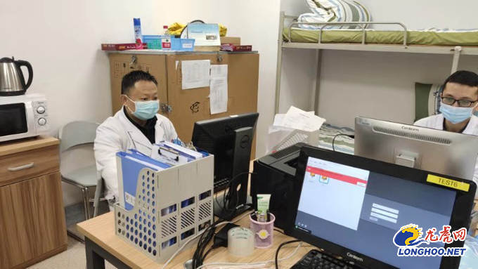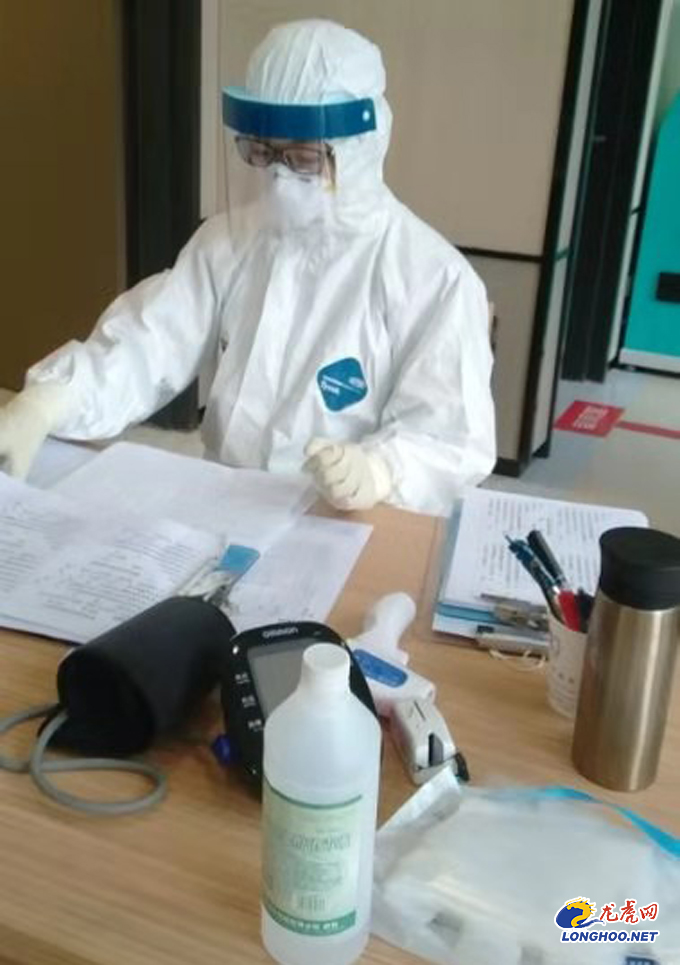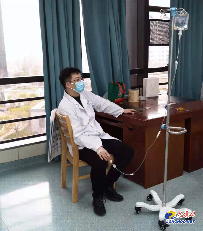 医院抽调医护人员上发热门诊时,心血管病科龚军主任、鲁佳博士主动报名,积极要求上发热门诊,春节这几天非常辛苦,他们放弃休假,连续值班,累了生病了却不肯离开岗位。龚军主任,扁桃体化脓,自己还在打着点滴,依然坚守岗位。鲁佳医师也扁桃体发炎,红肿,自己吃点药,轻伤不下火线,依然坚守岗位。记者走访时还发现他们仍然还工作在一线,在记者询问他们怕不怕自己被感染的时候,他们是这样回答的:“我们已经给自己监测过了,确定了自己不是感染者,我们只是普通感冒,只要我们不是感染者,不是传染源,我们就希望还能战斗在一线。如果有一天我们真被感染了,被隔离了,我们就不上这个发热门诊了。”