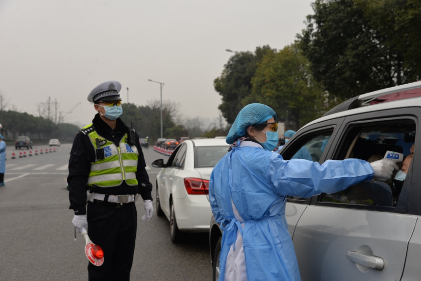 在核对登记完所有信息后,这辆鲁B牌照的车辆离开了,另外一辆车又行驶过来,刘宇和刘艳又重复着同样的流程和动作,戴着口罩和护目镜,两人没有交流,也没有说一句话,但配合却非常默契。驾驶员们配合着检查,他们不会知道,车窗外的这两个人原来是两夫妻。