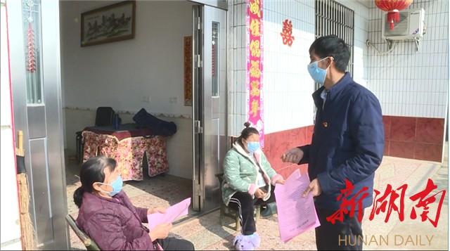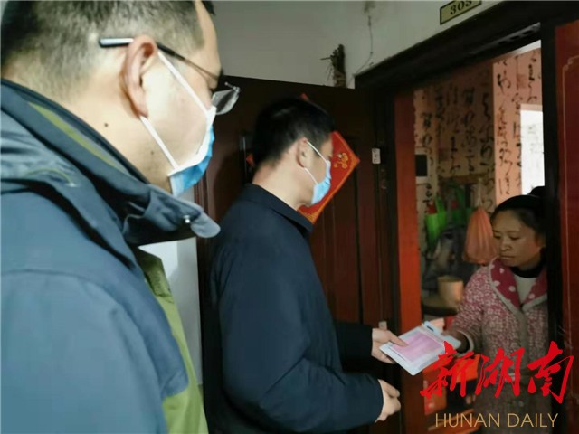 (望城区靖港镇众兴社区党总支书记肖龙辉走村串户及时了解情况。)