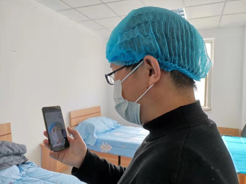 工作之余刘洪斌和母亲视频,请教业务知识的同时,互相叮嘱、互相鼓励
