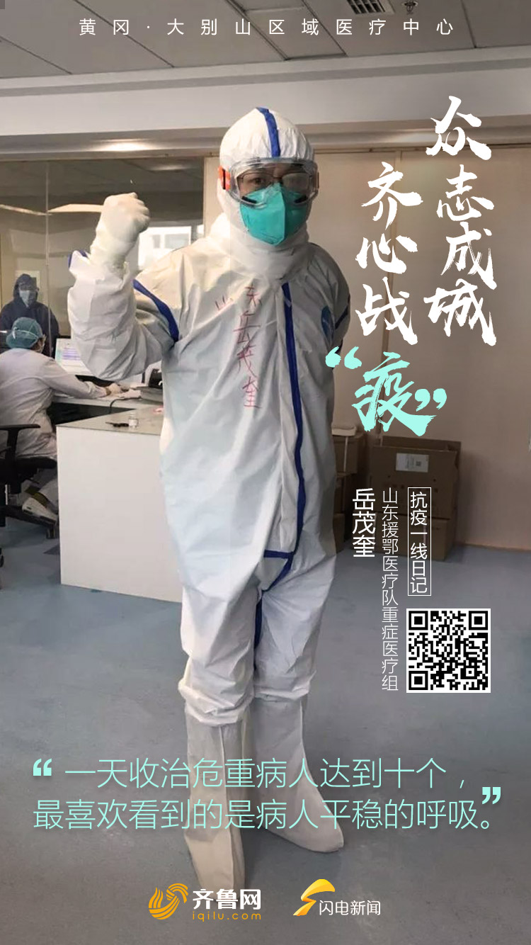 1月31日讯 病毒无情,山东有爱。自新型冠状病毒感染的肺炎疫情扩散以来,山东已累计派出两批共计270人的援助医疗队奔赴武汉,开展医疗救援工作。疫情面前,他们是最美的逆行者。如今,奋战抗疫一线的山东医疗队工作进展如何,他们又都经历了哪些惊险时刻?即日起,齐鲁网、闪电新闻客户端将推出“抗疫一线日记”系列报道,来听山东援鄂医疗队抗疫前线的故事。今天,我们来看山东援鄂医疗队重症组岳茂奎的抗疫一线日记。