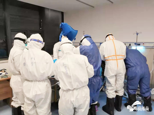 这是我们医疗队在黄冈的第一例插管病人,抢救完这个病人没多久,我们又对另一个病人进行了心肺复苏。我在病房里待了三个小时,下午五点,该换班了,我对外面等待的战友,来自德州的傅启凯医生说,吃点饭再进来,因为等到下班要八点了,他冲我挥了挥手,不愿再等,就踏进了隔离病房。