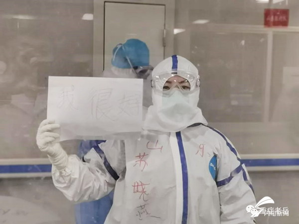 我很感动,其实在黄冈的每一天都很感动,每天来自家乡及全国各地的问候以及朋友圈和公众号上的祝福和关心,医院也无时无刻地在关心着我们的衣食住行,给我们寄物资、衣服。而我们身边的战友,给我的,则是另一种完全不同的感动,这是一种舍身忘我,不畏艰难的大无畏精神!