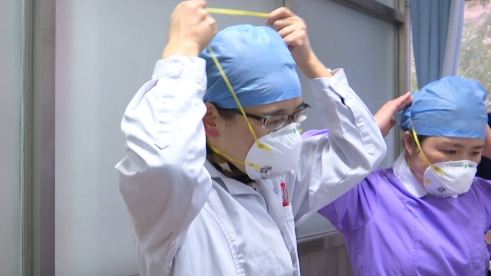 医学检验科史伟峰、姜庆波、马锦洪三位主任带头奋战在第一线,穿着防护服,戴上口罩和护目镜,上厕所要趁中午吃饭的时候,但他们苦中作乐,“没事,穿上防护服其实我们就不喝水了,一天只要上一趟厕所!”神经外科重症监护室副护士长朱立胜,2008年工作以来过年只回过安徽老家一次,今年原本打算回家过年,疫情一来,他毫不犹豫地取消了计划,“气道插管、呼吸机操作是我的强项,关键时刻,我不能退!”
