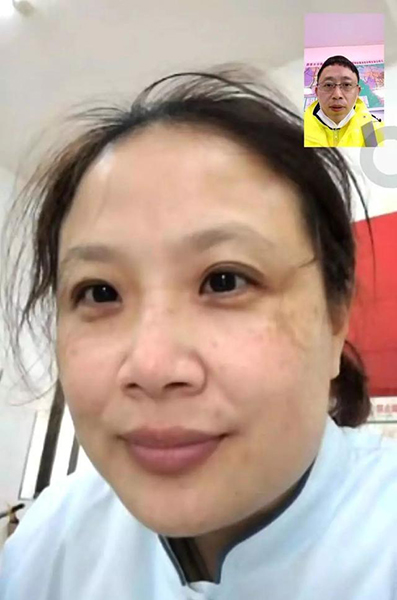 工作间隙,夫妻二人通过微信视频简单报了平安,转身继续各自手中的工作。都说陪伴是最长情的告白。但是,面对疫情,夫妻二人毅然选择走在前线,坚守各自的岗位。(朱红梅)