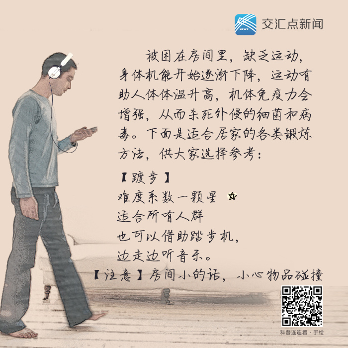 新型冠状病毒感染的肺炎疫情要求我们不得不“大门不出,二门不迈”,很多人开始在隔离的彷徨中安心做个“躺着就能为国家做贡献的肥宅”,可隔离的期限尚无决断,“宅”久了容易产生后遗症,如何顺利度过隔离期,今天聊的“画”题是:科学锻炼。