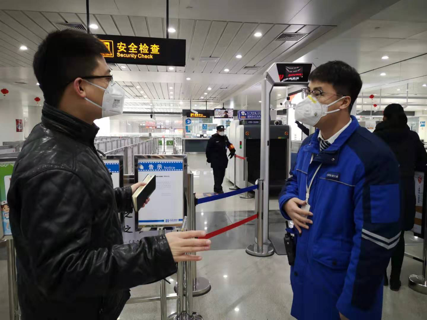 在现场,我看到和以往相比,客流量少了很多,每个人都戴着口罩。出入站口检票员在为每位乘客监测体温,这一刻我在想,“她是谁的孩子?又是谁的母亲?”他(她)们坚守在自己的岗位上守护着我们这座城市的“大门口”。在长途汽车东站,已停运了省际班车,但工作人员依然坚守在工作岗位上,在大厅的各个角落进行着消毒工作。偶尔也有人前来问询“是否有到XXX的汽车?”他们仍然很有耐心的为乘客解答。