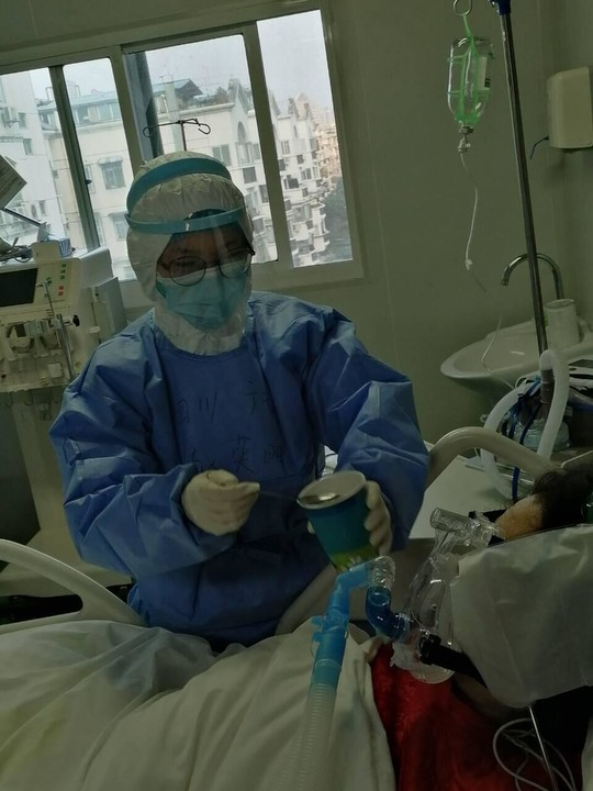 7点20我们到达此武汉市红十字会医院,做好严密防护后我们进入了7楼阳性重症病房。
