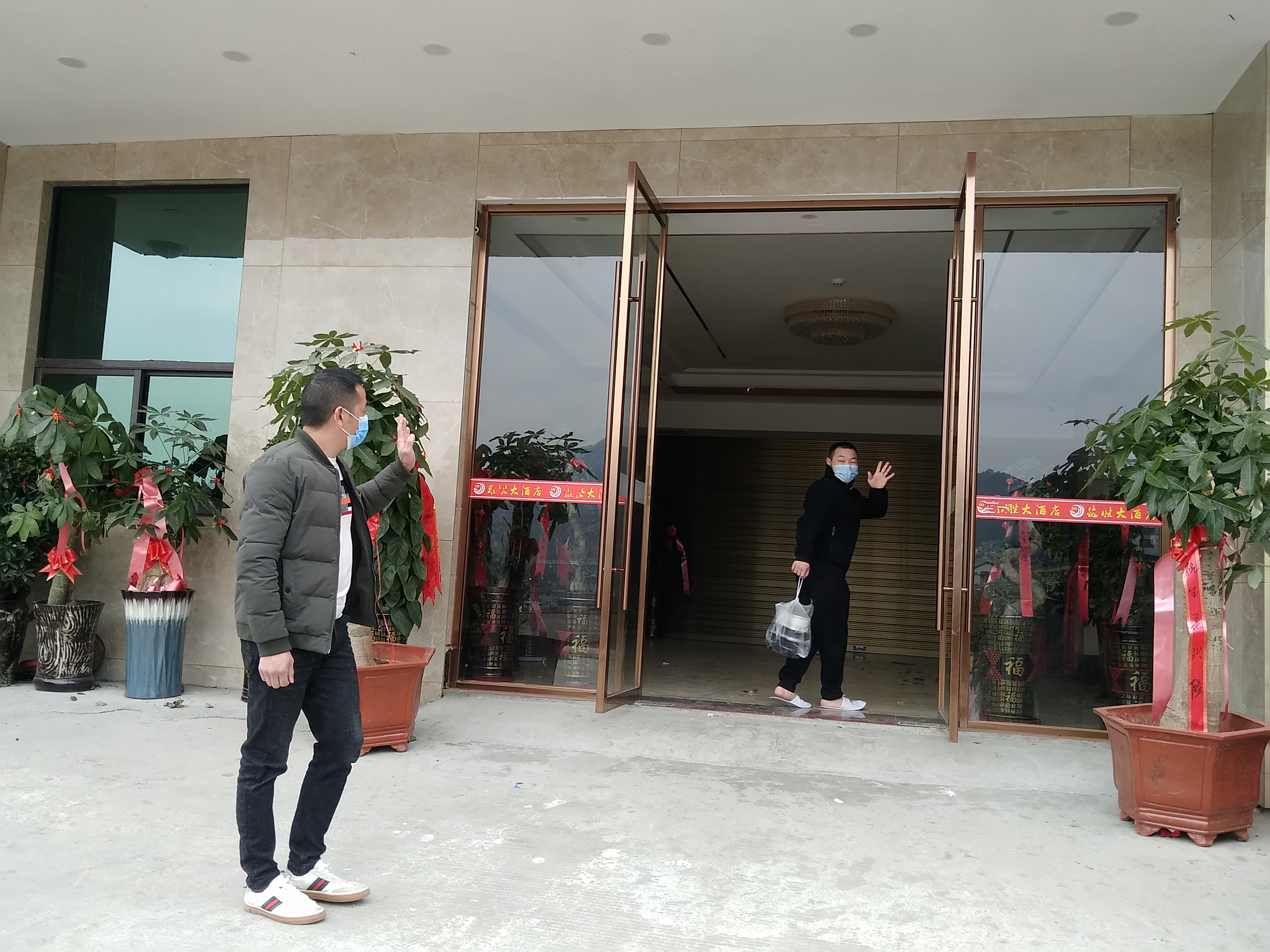 2月1日,与往常一样,在一阵电话寒暄之后,隔着宾馆客房的玻璃窗,两位年轻的男子相互招手致意。随后,宾馆里的男子到一楼取餐,感激地目送着这位特别的“外卖小哥”。这感人的一幕,从除夕那天早上开始,就在政和县石屯镇境内一家宾馆门口每天上演……