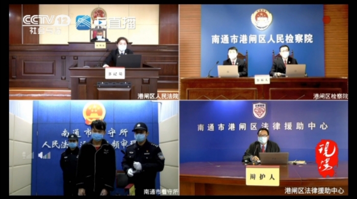 本案适用速裁程序开庭,同时,因疫情防控形势严峻,本案采用远程视频开庭的方式进行审理,庭审现场为主场,检察院、看守所、法律援助中心设分场,依托网络四点连线,法官、检察官、犯罪嫌疑人、辩护人视频对话实施远程庭审。
