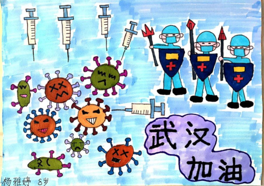 8岁的小朋友说:万众一心,众志成城!共同打赢抗疫防疫攻坚战!中国加油! 湖北加油!武汉加油!挺住!