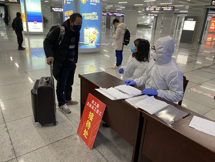随着企业陆续复工,外地的员工纷纷返回武义。为确保外地员工安全有序回到企业,开发区牵头,抽调开发区、综合执法局、桐琴镇、泉溪镇4名工作人员,组建“武义返工人员接待处”,在疫情防控期间常驻金华高铁站,具体负责企业返武员工接待和与企业的对接工作。