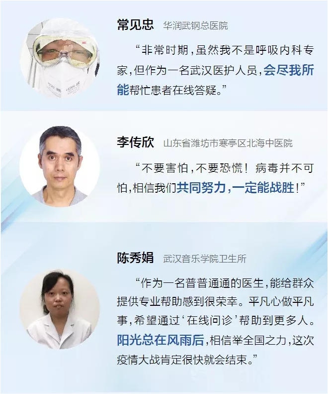 “非常时期,回复迅速,解除了我的担忧。”截至2月11日,来自全国的993位医生加入武汉“在线问诊”平台,回复网民咨询2.1万余件,又快又好的“坐诊”收到不少网民留言点赞。