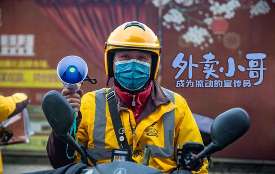 疫情袭来,四川泸州市江阳区外卖小哥自发组织宣传疫情防治知识。在外卖骑手的车上张贴宣传单,装载小喇叭,穿行在城市乡村之间,在送餐途中变身为流动的宣传员。