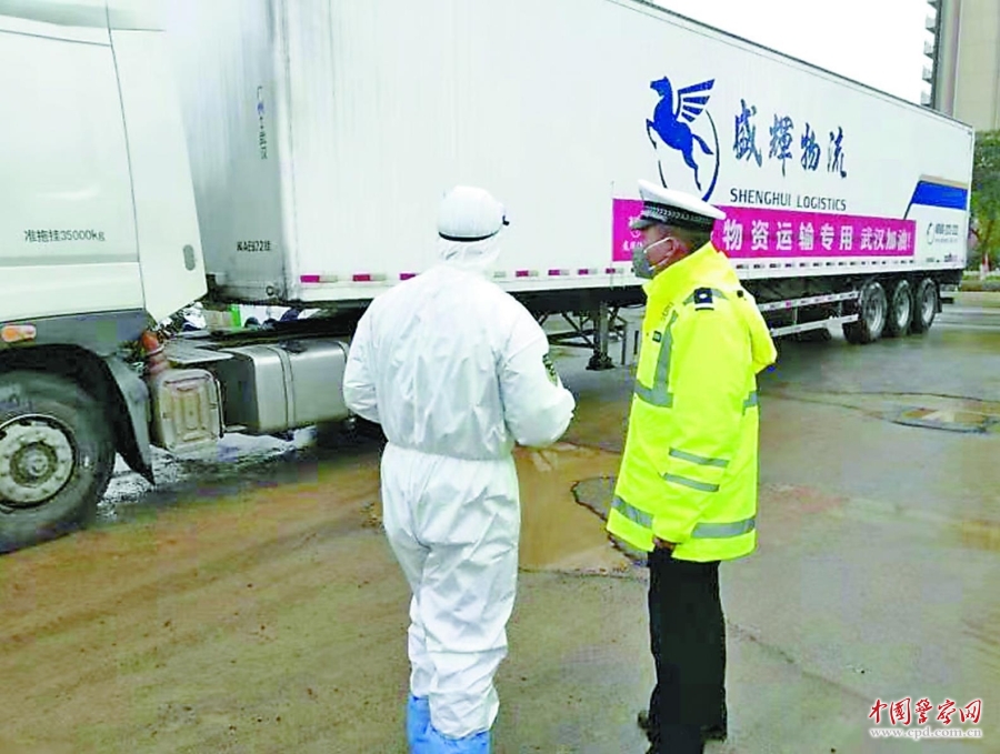 2月10日16时许,驾驶摩托车在火神山医院附近巡逻一圈后,湖北省武汉市蔡甸区交通大队民警李辉远远看见医院门口堵着一辆集装箱大货车。