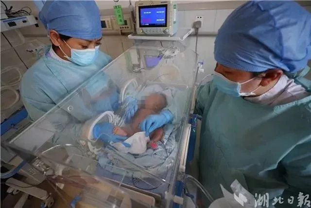 他的母亲李女士,31岁,新冠肺炎确诊患者,临产时呼吸困难,生命体征极不稳定。