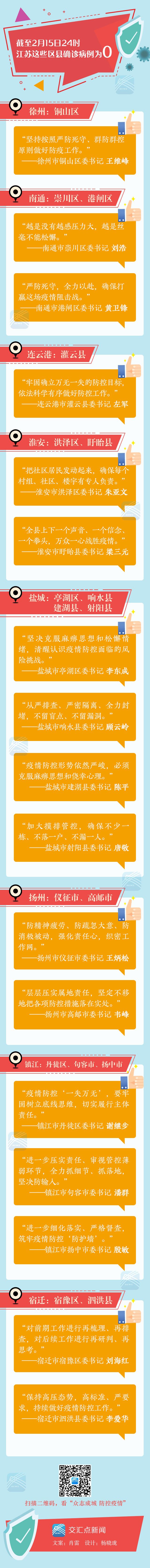 截至2月15日24时,江苏这些区县确诊病例为0