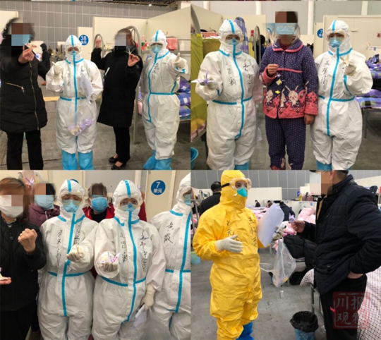 “姑娘,太谢谢你们了,不光来给我治病,还有心的为我们准备这些礼物。”“我一定好好配合治疗,争取早日出去。”……大家喜笑颜开,一声声祝福的话语在方舱传开。