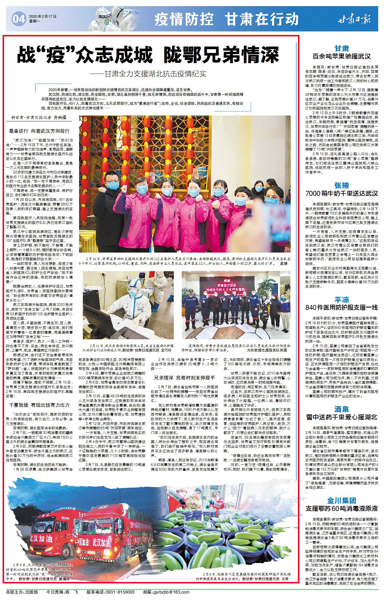 “白衣战士”逆向而行,居家防疫的甘肃人则有钱出钱,有力出力,分秒必争,全力支援湖北。