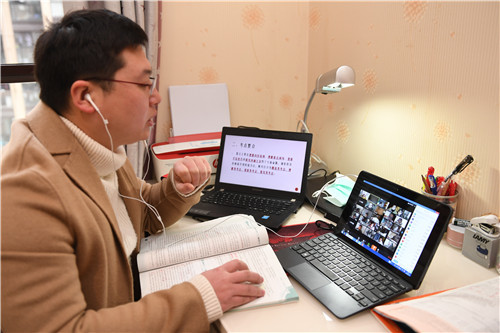 “从面对面变成‘屏对屏’,这次‘开学’可不平凡!”摘下耳机,李挚告诉记者,通过线上平台,老师可以“共享屏幕”进行实时授课和互动交流,并看到每一位学生的听课场景。