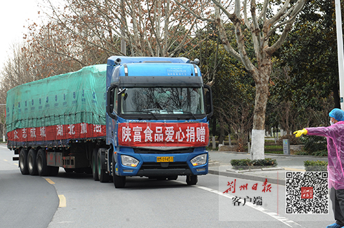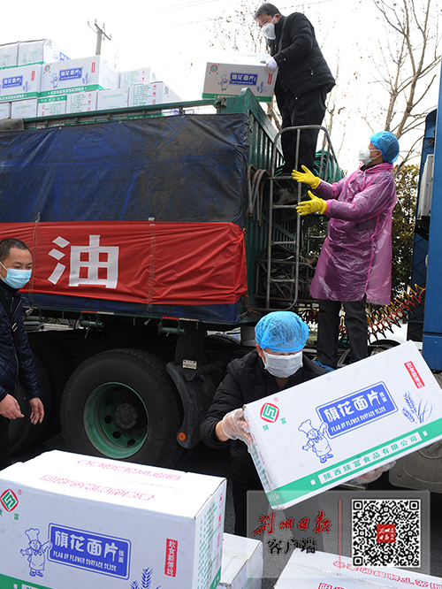据悉,这批爱心物资由陕西省富平县陕西陕富食品有限公司捐赠。连日来,新冠肺炎疫情牵动着全国人民的心,2月13日,陕西陕富食品有限公司董事长邢仲芳得知荆州市面条紧缺的信息后,多次与荆州市发改委联系抗击疫情捐赠事宜。同时,安排企业加班加点生产,紧急征调运输车辆,日夜兼程运抵荆州。