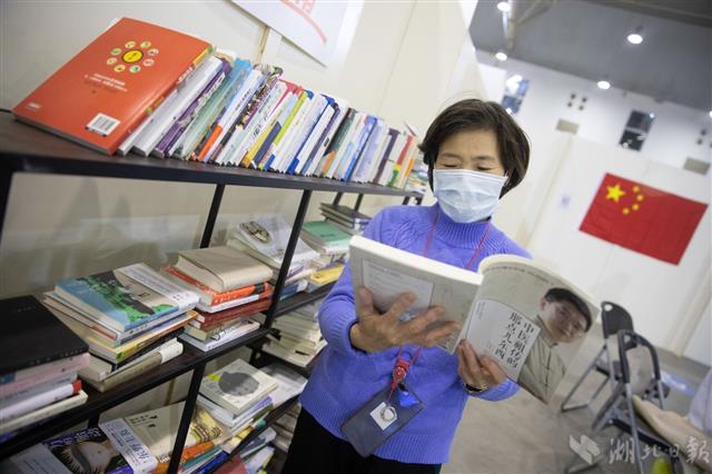 2月17日,武汉客厅方舱医院,患者在看书。(湖北日报全媒记者 柯皓 摄)
