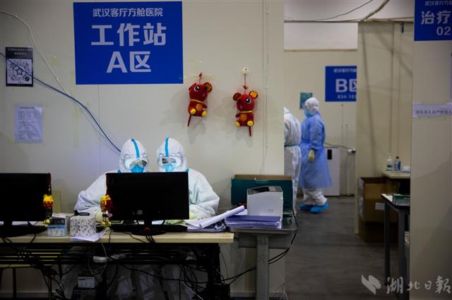 2月17日,武汉客厅方舱医院,医护人员在工作。(湖北日报全媒记者 柯皓 摄)