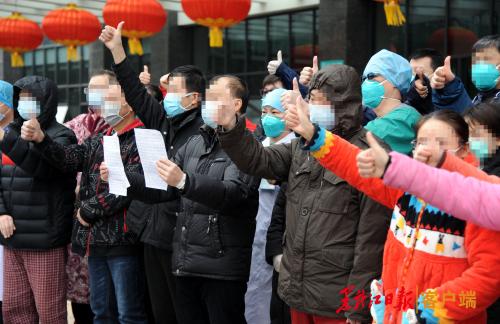在现场记者看到,我省第一批医疗队成员哈医大二院的李家宁、韩开宇,梁明,陈立艳围着出院患者王某,叮嘱她出院后的注意事项,并互加微信以便患者和医生随时沟通。医生陈立艳向记者介绍说:38岁王某是1月29日收治入院的第一批危重患者,当时进来的时候王某的状况及其危险,在治疗的过程中医生韩开宇发现患者出现下肢静脉血栓,这种血栓会导致肺栓塞和猝死的危险。李家宁医生果断采取相应的措施把这个问题解决。韩开宇还把哈医大二院血管外科的医生微信推给患者王某,让王某出院后出现血管栓塞时能和医生沟通。