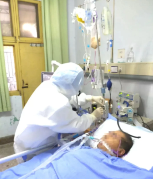 经过医院输血科交叉配血及血浆复融等系列准备就绪后,第一时间送至医院的ICU重症监护室,患者开始接受新冠恢复期血浆输注治疗。