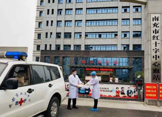 在紧急完成血液调配手续后,成都市血液中心储血供血科副科长张永鹏随急救送血车出发前往南充,将3袋共计300毫升新冠肺炎康复者恢复期血浆运送至南充市中心血站。