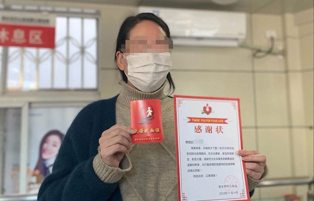 今天下午,丽水首位捐献血浆的出院患者,在市中心血站爱心献血屋完成血浆捐献,她是浙江第9位捐献血浆的新冠肺炎康复者。