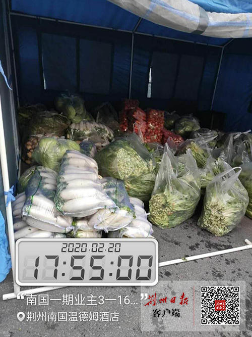 “蔬菜来了,大家都有,请有序到各楼栋入户大厅领取,本批蔬菜由小区3栋业主提供……”上午8时,在沙市区南国尚都业主群内,物业经理彭远兰给大家报告了这一消息,不一会,陆续出现居民戴着口罩下来领取。