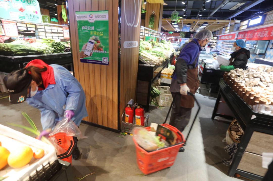 截至目前,北山超市的大米、面条、食用油、鸡蛋、猪肉、蔬菜,可保供20至30天。