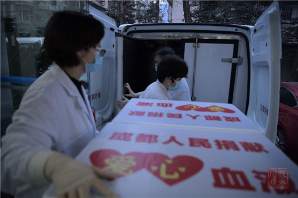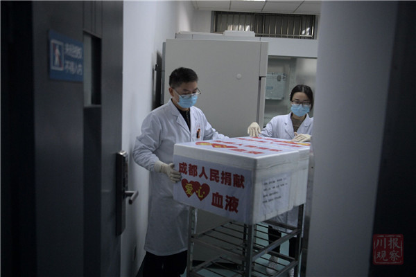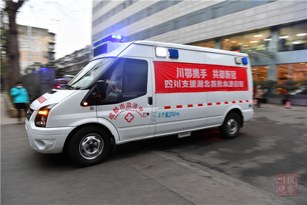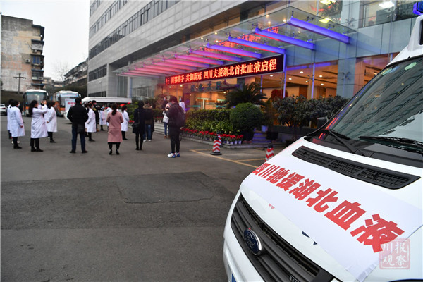 2月24日早上8点,随着一辆送血车从位于成都市人民南路四段的玉洁东街驶离,成都首批援助湖北的血浆从成都血液中心发出。