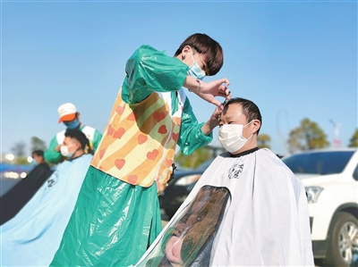 ▲2月20日,7名爱心理发师走进南昌小蓝经开区金湖管理处防疫现场,为一线防疫人员免费理发,为打赢疫情防控阻击战贡献力量。 本报记者 范志刚摄