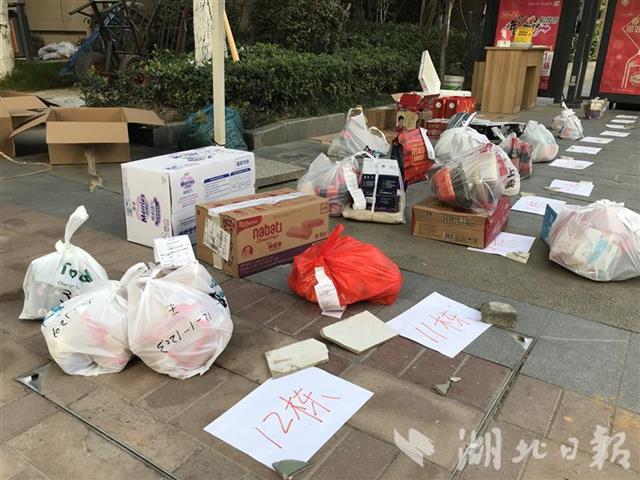 为了减少人员聚集,确保配送环节安全,业委会和物业公司商量,由物业人员把团购物资送到每栋楼电梯口,每单由业主自愿支付5元“跑腿费”。这一举措得到了不少业主的欢迎,实现了足不出单元门领取生活物资。每次生活一栋楼所团购的生活物资全部堆放到楼栋内电梯口,然后根据订单以此从低楼层到高楼层在微信群里“叫号”,通知业主下来取货。