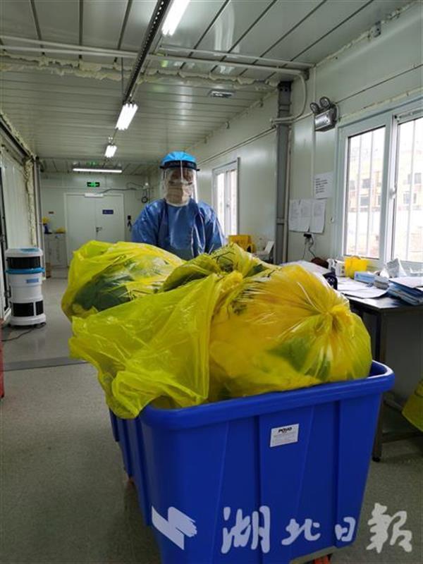 每天,吴昊都要进入“红区”打扫病房卫生,喷洒消毒剂,扫地拖地,两个多小时下来,每次都是汗流浃背。