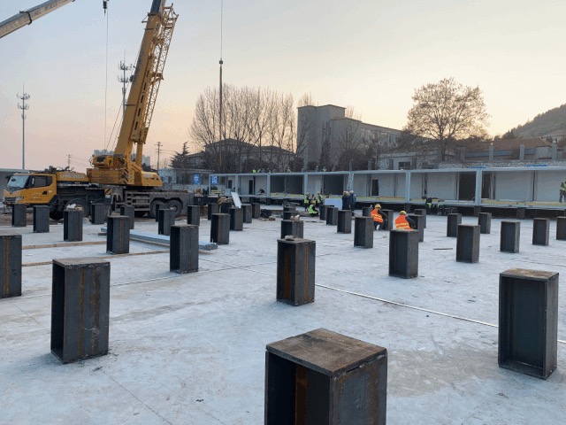 2月12日,集装箱基础钢结构加工完成,集装箱现场拼装完成35%,并开始安装。