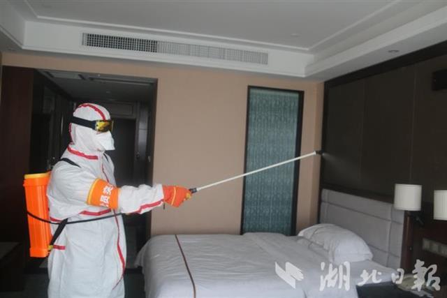 “明天中午,援助孝感的重庆市医疗队91名医护人员将入住天紫大酒店,请你们帮助对酒店进行消毒。”2月22日14时许,孝感市孝南区交通路消防救援站接到区防疫指挥部向119打来的求助电话。时间紧、任务重,孝南区交通路消防救援站迅速请示上级同意后,组织8名党员突击队员前往执行任务。在消毒过程中,每名队员都身着医用防护服,背负50余斤重的消毒水,穿梭于201个客房、3个厨房、2个接待大厅、11个会议室,除了中途添加药剂和清水,他们的脚步一直没有停歇,但队员们没有一个人喊苦,没有一个人喊累,他们说:“医护人员是冒着生命危险来支援我们,为他们提供安全的环境,是我们义不容辞的责任。”最终,队员们赶在医护人员入住前,圆满完成了对酒店12层楼11335平方米的消毒任务。