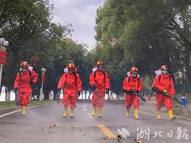 “今天我们的任务是对病人隔离点和有确诊病例的居民小区进行消毒,这些区域都有一定风险,我们是党员,就应当冲锋在前。”这是十堰市武当山消防救援站党员突击队队长在领受任务时动员队员们说的话。2月以来,这支党员突击队已经连续对3个病人集中隔离点、11个有确诊病例的小区开展集中消毒工作。每到一处,队员们就分为两个组,每组由1名干部、1名驾驶员和1名操作员组成,利用消防水带、多功能水枪对大面积的室外场地和外墙面开展消毒作业,然后再逐一对拐弯处、出入口等细节部位进行消毒。目前,突击队已累计消毒19次,消毒面积达187000平方米。