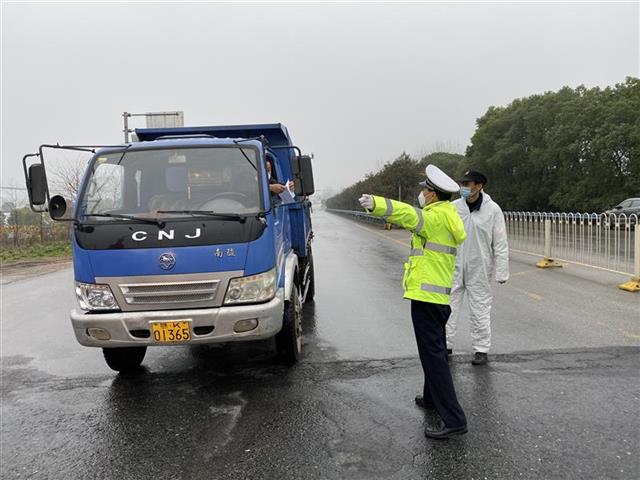 “请您稍等,让运输防疫物资的车辆先走。”民警请几位在东西湖区从事养殖业的返汉人员站到一旁,让一辆运输救援物资的车辆先行登记离开。