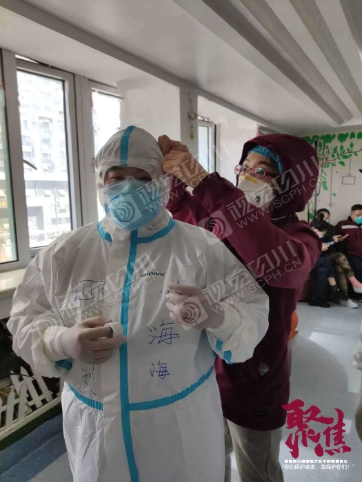 2月28日一早,在武汉华中科技大学附属协和医院和汉阳方舱医院,来自成都京东方医院的4名院感医生正马不停蹄地帮助轮班的医务人员穿戴和解除防护服、进行全身消毒和感染防控记录。
